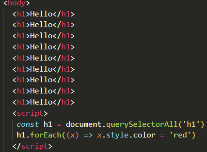 querySelectorAll() 메서드 사용해 모든 문서 객체에 색상 적용